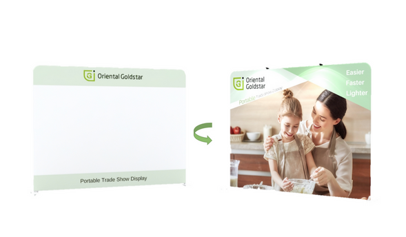 Add a projection screen on one side of your tension fabric display to display videos